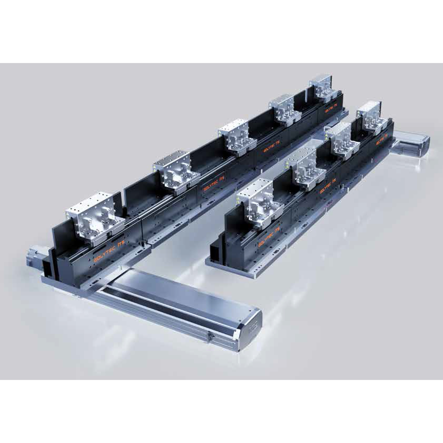 Cable-free movers (no drag chains) enable synchronous and asynchronous control. Production sequences and stations are software-configurable to match production pace and optimize workflows.